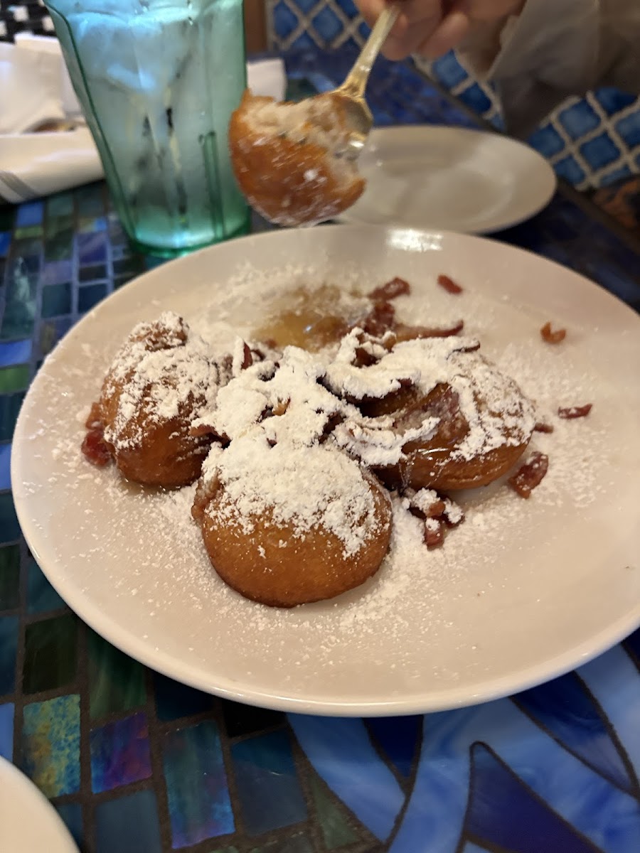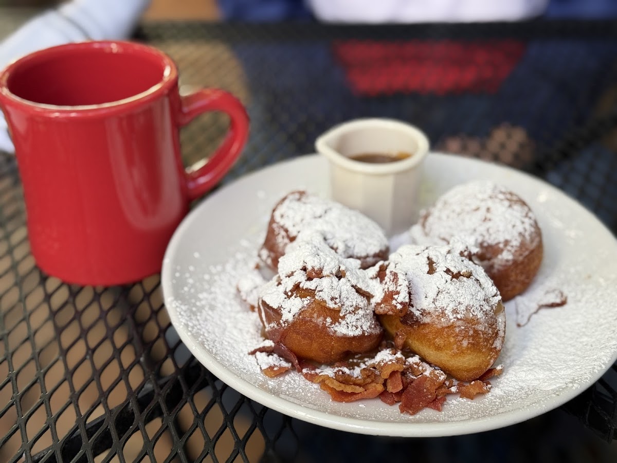 This is just such a nice place to have breakfast! I've eaten here a couple of times now and the food is delicious every time. The wait staff is attentive and all around awesome!! We sat outside each time and it seriously left like we were in our own little private dining area. The outdoor seating was brilliantly planned!! Highly recommend!! (Also the maple bacon beignets are delicious!!l